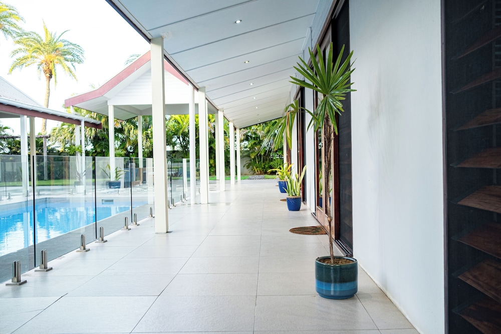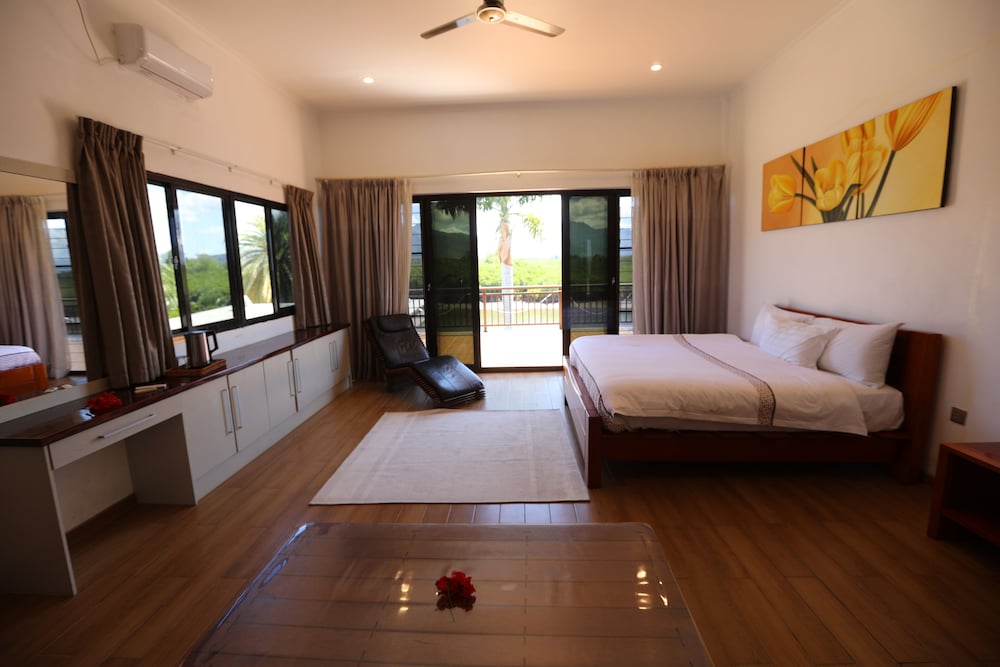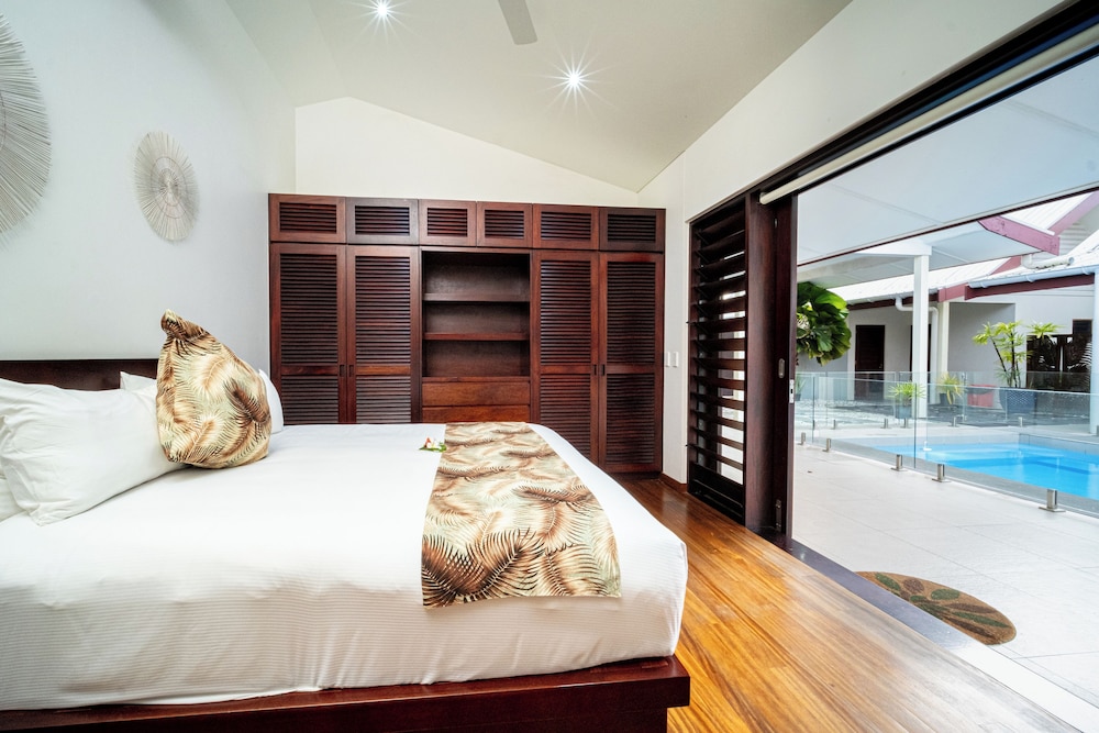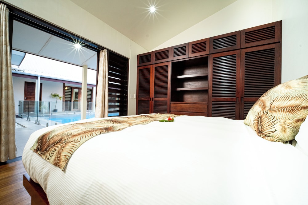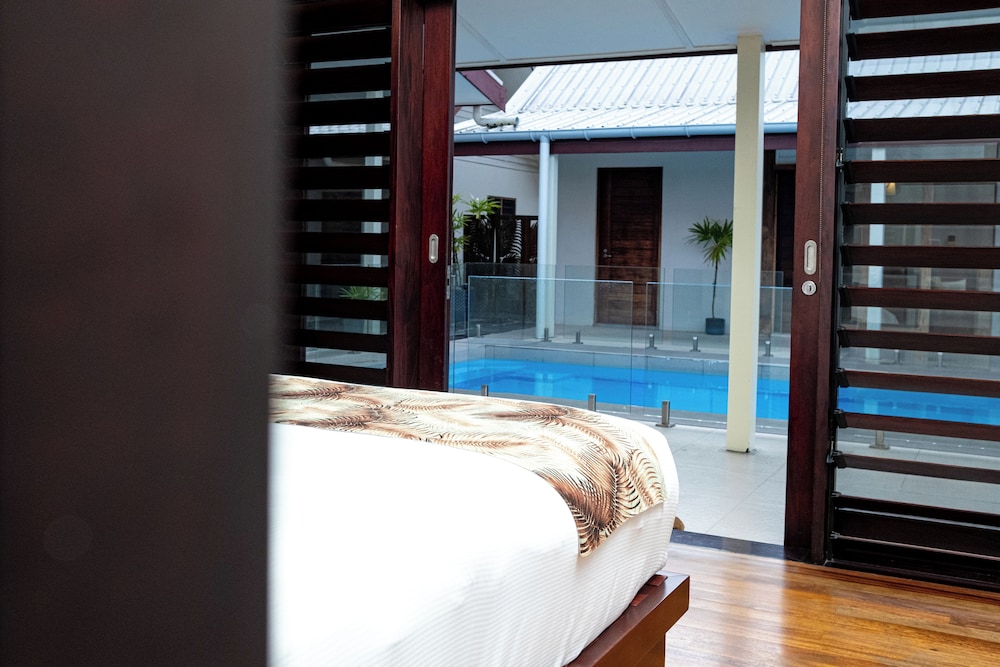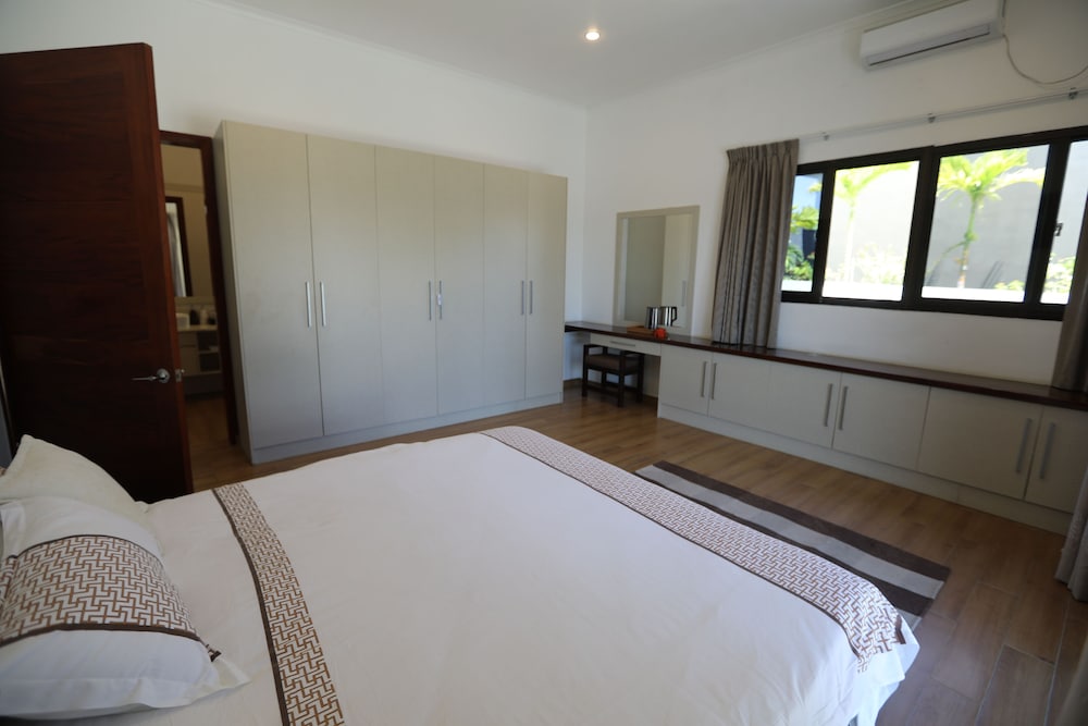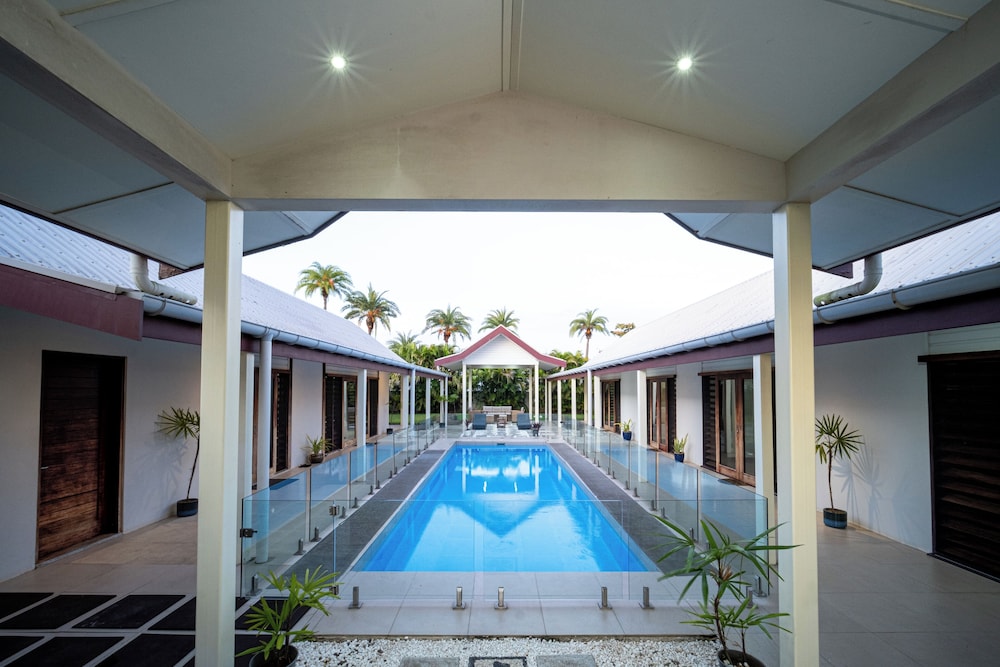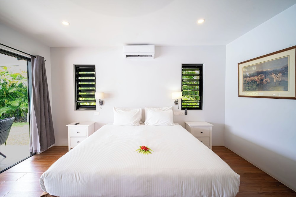 Naisoso Island Villas in Nadi liegt am Meer, nur eine 15-minütige Fahrt von Namaka Market und Garden of the Sleeping Giant entfernt. Diese Villa in Strandnähe ist 10,7 km von Wailoaloa Beach und 11 km von Sabeto Hot Springs and Mud Pool entfernt. Gönn dir einen Aufenthalt in einem der 10 Zimmer, die individuell ausgestattet sind und über Privatpools und einen Smart-TV verfügen. Die Zimmer haben eigene möblierte Patios. In den Küchen finden sich große Kühlschränke/Gefrierfächer, Öfen und Mikrowellen. Ein WLAN-Internetzugang (kostenlos) ist ebenso verfügbar wie Kabelempfang. Entfernungen werden bis auf 0,1 Kilometer gerundet.