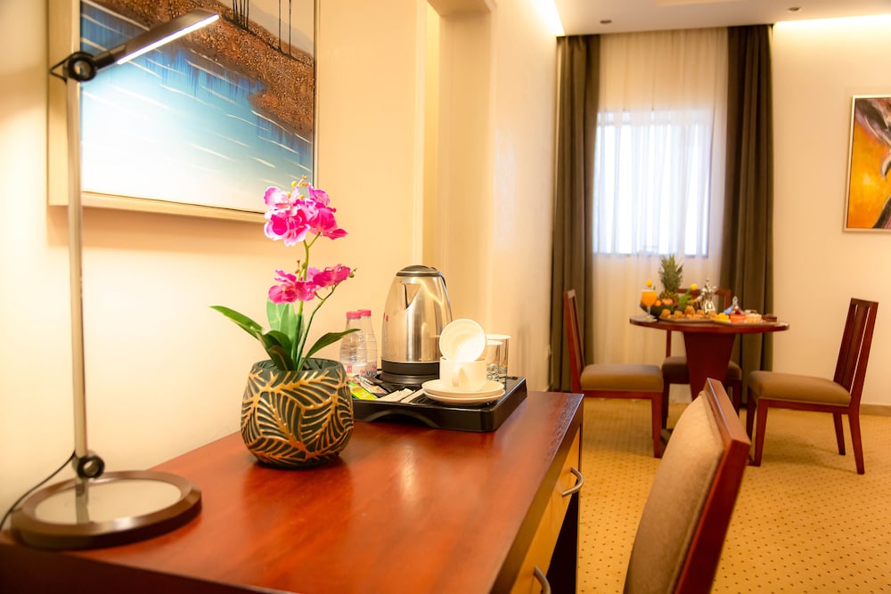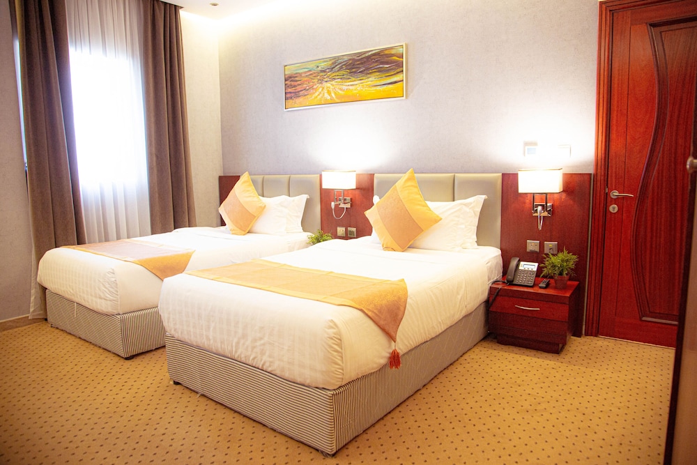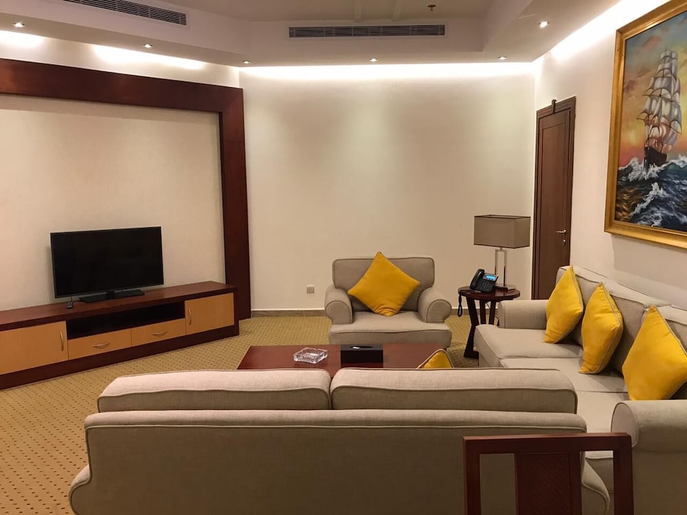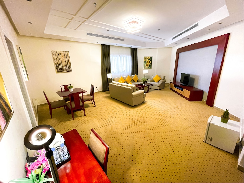 VERTA HOTEL - Jeddah in Djiddah (Al Mohammadiyyah) ist nur 10 Autominuten entfernt von: King Abdul Aziz Road und Einkaufszentrum Mall of Arabia. Dieses Hotel ist 6,6 km von Heraa International Mall und 6,7 km von Jeddah International Exhibition & Convention Centre entfernt. Fühl dich in einem der 49 klimatisierten Zimmer, die Küchen bieten, wie zu Hause. LCD-Fernseher mit Satellitenempfang garantieren Unterhaltung und es gibt außerdem einen WLAN-Internetzugang (kostenlos). Zur Austattung gehören Telefone ebenso wie Safes und Schreibtische. Entfernungen werden bis auf 0,1 Kilometer gerundet.