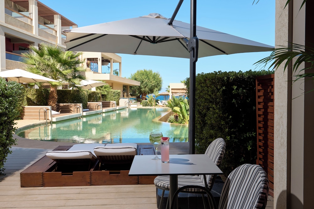 Atlantica Kalliston Resort - Adults Only in Chania ist nur eine 1-minütige Fahrt von Strand von Kalamaki und eine 6-minütige Fahrt von Markthalle entfernt. Dieses Resort in Strandnähe ist 2,2 km von Strand Chrissi Akti und 4,4 km von Strand von Agia Marina entfernt. Fühl dich in einem der 213 Zimmer, die Espressomaschine bieten, wie zu Hause. Ein WLAN-Internetzugang (kostenlos) ist ebenso verfügbar wie Satellitenempfang. Es gibt eigene Badezimmer, die über kostenlose Toilettenartikel und Haartrockner verfügen. Zur Austattung gehören Telefone ebenso wie Safes und Schreibtische. Entfernungen werden bis auf 0,1 Kilometer gerundet.