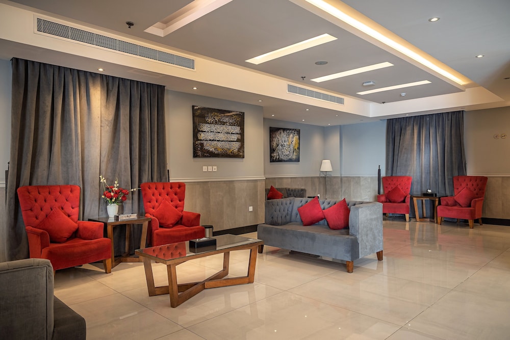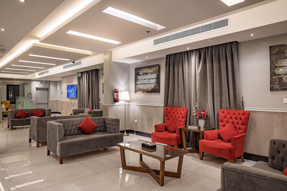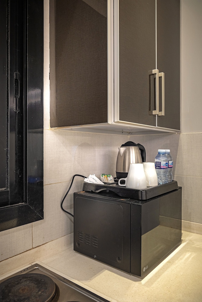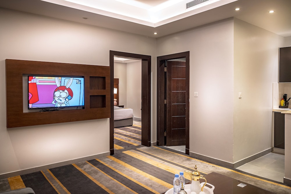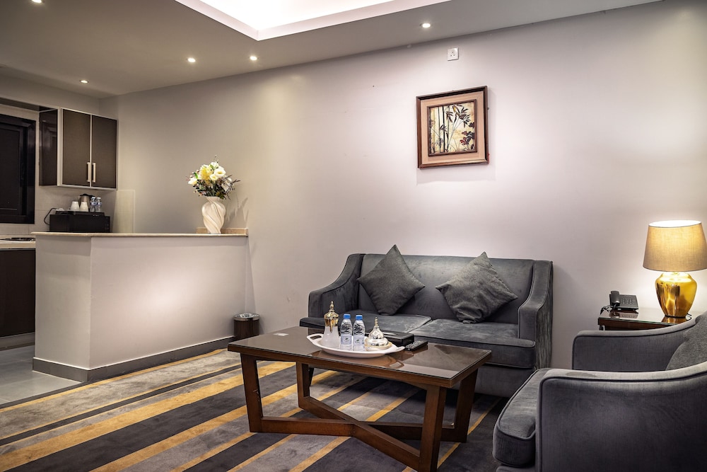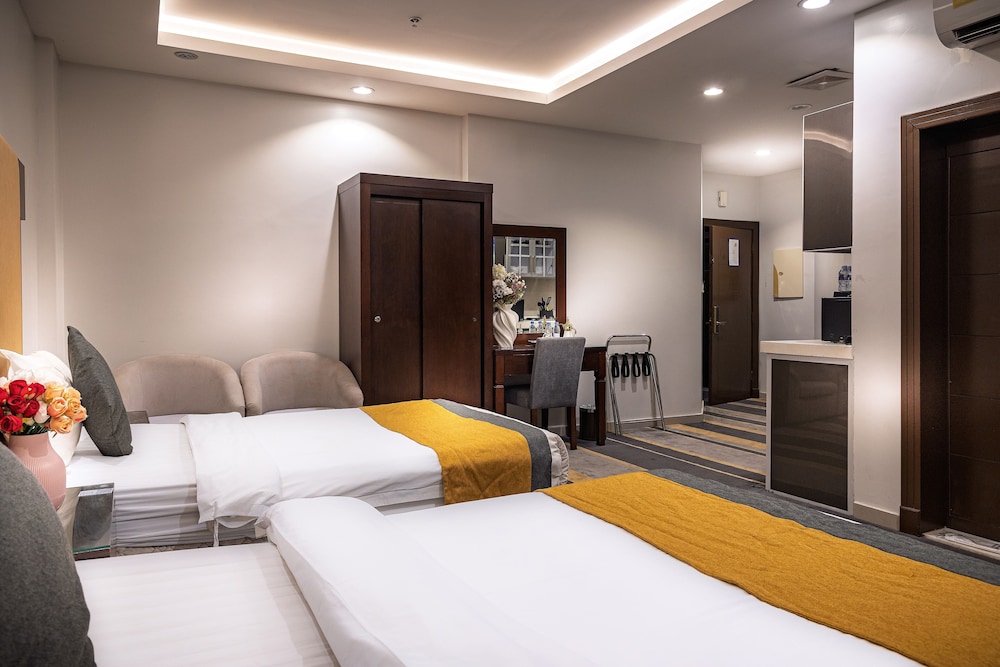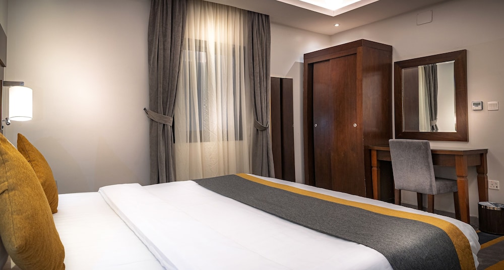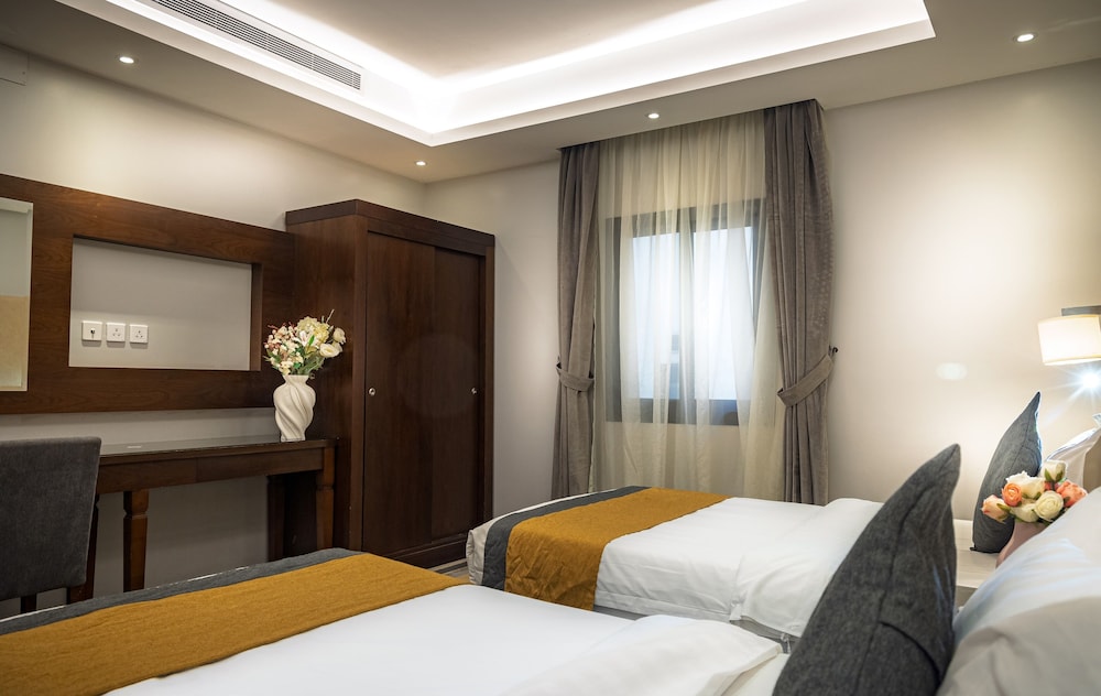 Dar Wed Serviced Apartments in Dschidda (An Nuzhah) ist nur 15 Minuten Fahrt von Red Sea Mall und Jeddah Corniche entfernt. Dieses Aparthotel im luxuriösen Stil ist 10,2 km von Rotes Meer und 1,7 km von Jeddah International Exhibition & Convention Centre entfernt. Fühl dich in einem der 43 klimatisierten Zimmer, die Küchen bieten, die über Kühlschränke und Öfen verfügen, wie zu Hause. In deinem Zimmer findest du ein Memory-Foam-Bett mit hochwertige Bettwaren vor. 4 cm groáe LCD-Fernseher mit Kabelempfang sorgen fr gute Unterhaltung; auáerdem steht ein WLAN-Internetzugang (kostenlos) zur Verfgung. Zur Austattung gehören Safes und Mikrowellen; die Zimmer werden auf Anfrage sauber gemacht. Entfernungen werden bis auf 0,1 Kilometer gerundet.