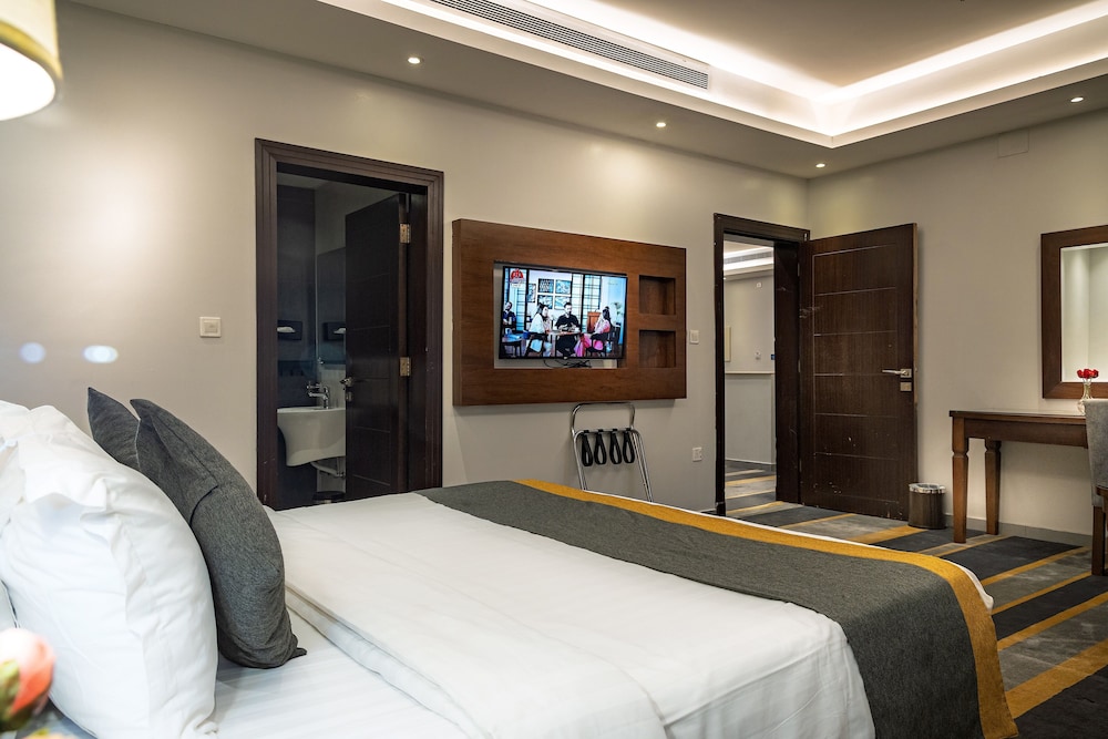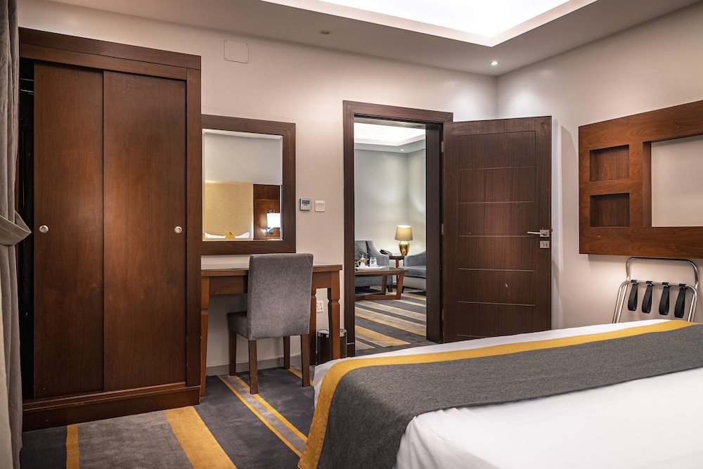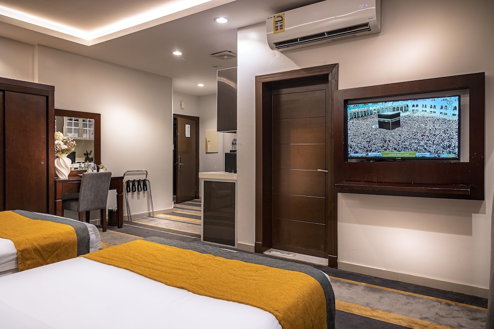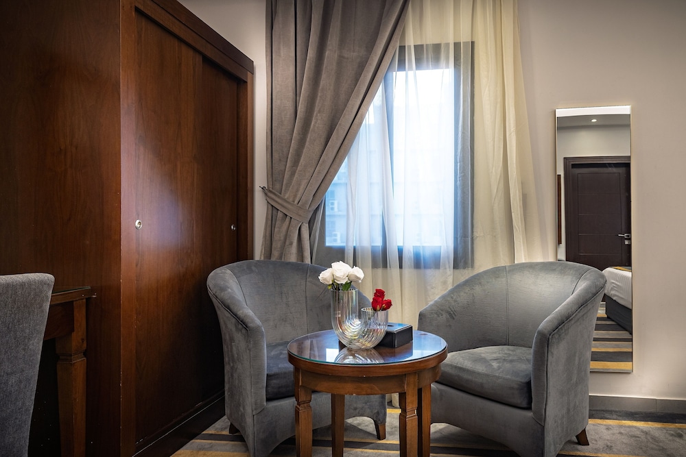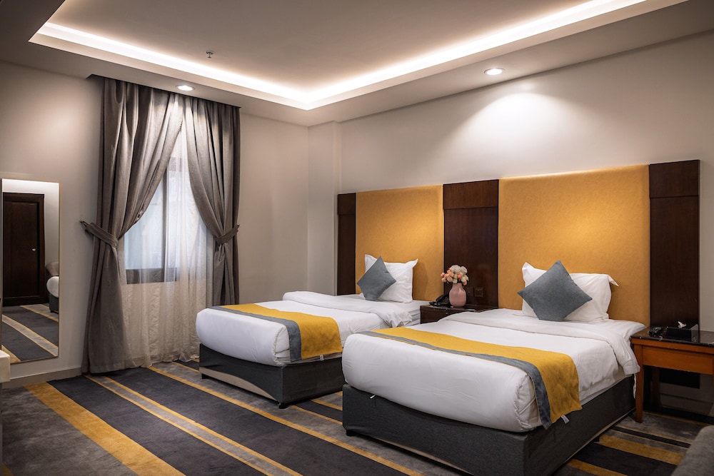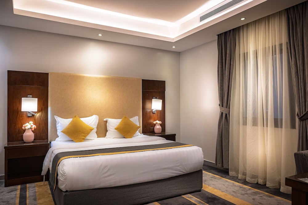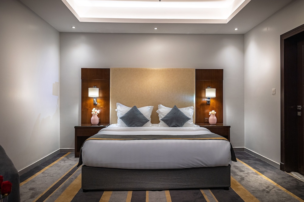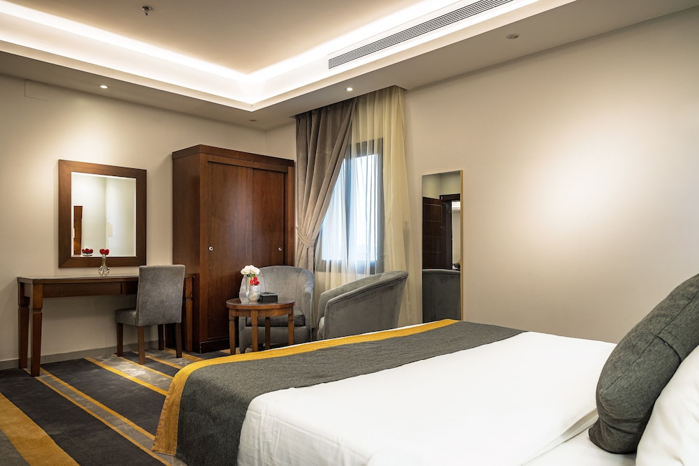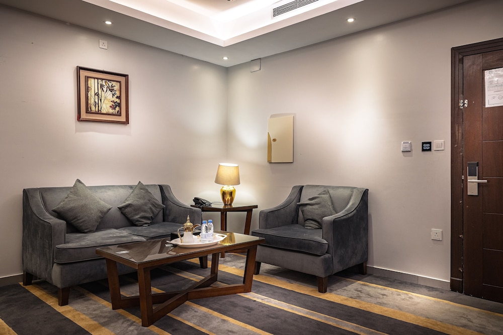 Dar Wed Serviced Apartments in Dschidda (An Nuzhah) ist nur 15 Minuten Fahrt von Red Sea Mall und Jeddah Corniche entfernt. Dieses Aparthotel im luxuriösen Stil ist 10,2 km von Rotes Meer und 1,7 km von Jeddah International Exhibition & Convention Centre entfernt. Fühl dich in einem der 43 klimatisierten Zimmer, die Küchen bieten, die über Kühlschränke und Öfen verfügen, wie zu Hause. In deinem Zimmer findest du ein Memory-Foam-Bett mit hochwertige Bettwaren vor. 4 cm groáe LCD-Fernseher mit Kabelempfang sorgen fr gute Unterhaltung; auáerdem steht ein WLAN-Internetzugang (kostenlos) zur Verfgung. Zur Austattung gehören Safes und Mikrowellen; die Zimmer werden auf Anfrage sauber gemacht. Entfernungen werden bis auf 0,1 Kilometer gerundet.