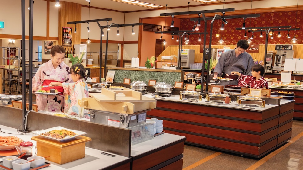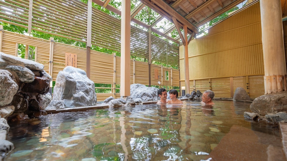 Ooedo Onsen Monogatari Yamanaka Saichoraku in Kaga ist nur wenige Schritte von Kakusenkei-Schluchten und 12 Gehminuten von Yuge Kaido Straße entfernt. Dieses Hotel ist 1,1 km von Korogi Bridge und 1,2 km von Kutani Kinuya Töpferwerkstatt entfernt. Fühl dich in einem der 71 klimatisierten Zimmer mit Kühlschrank und LCD-Fernseher wie zu Hause. Ein WLAN-Internetzugang (kostenlos) steht zur Verfügung. Die Badezimmer bieten Hausschuhe und Hausschuhe in Kindergröße. Zur Austattung gehören Safes und Schreibtische; die Zimmer werden täglich sauber gemacht. Entfernungen werden bis auf 0,1 Kilometer gerundet.