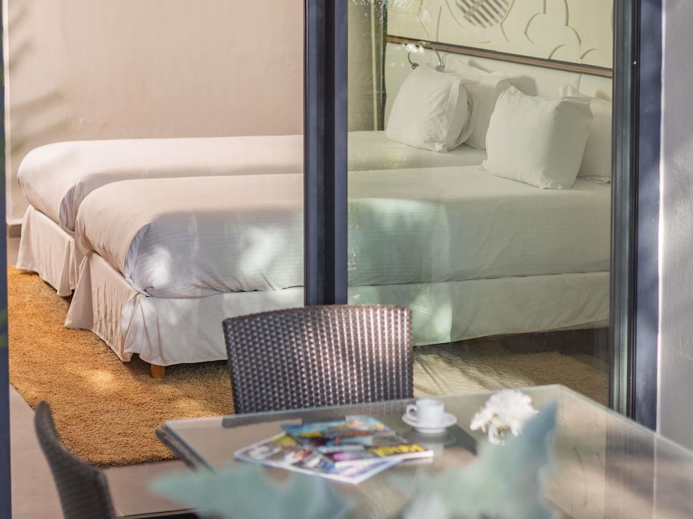 • Die Unterkunft bietet je nach Verfügbarkeit Zimmer mit Verbindungstür/nebeneinanderliegende Zimmer. Bitte wende dich mit deiner Anfrage direkt an deine Unterkunft. Die Telefonnummer findest du auf der Buchungsbestätigung.
