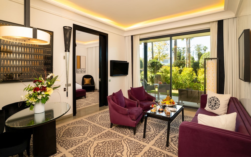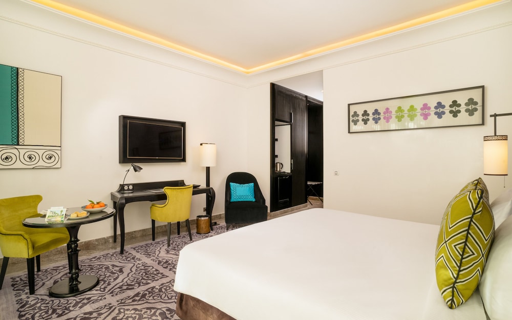 Zum Angebot gehören ein kostenloser Internetzugang per Kabel, ein Textilreinigungsservice und eine rund um die Uhr besetzte Rezeption. Wenn du eine Veranstaltung in Rabat planst, ist dieses Hotel eine gute Wahl, denn zu den 1851 Quadratfuß (172 Quadratmeter) großen Veranstaltungsräumlichkeiten zählen Konferenzfläche und 3 Tagungsräume. Der Flughafentransfer (rund um die Uhr) ist kostenpflichtig; außerdem gibt es vor Ort Folgendes: Parkservice (kostenlos). Entspann dich im Wellnessbereich, der Massagen und Körperbehandlungen bietet. Für deine Freizeit bieten sich folgende Einrichtungen an: Außenpool, Sauna und Fitnessbereich (rund um die Uhr geöffnet). Weitere Highlights, die dieses Hotel im Art-déco-Stil bietet, sind kostenloses WLAN, ein Concierge-Service und ein Hochzeitsservice. Nahe gelegene Attraktionen zu erreichen ist dank des Shuttles (gegen Gebühr) ein Kinderspiel. Genieße Mittagessen oder Abendessen bei Le Safran, einem Restaurant mit Schwerpunkt auf internationale Küche. Oder bleib gemütlich auf deinem Zimmer und nutz den Zimmerservice (rund um die Uhr). Deinen Durst kannst du an der Bar/Lounge stillen. Gegen Gebühr wird täglich von 06:30 Uhr bis 10:30 Uhr ein kontinentales Frühstück angeboten.Du wirst gebeten, die folgenden Gebühren direkt in der Unterkunft zu zahlen. Gebühren beinhalten möglicherweise geltende Steuern: