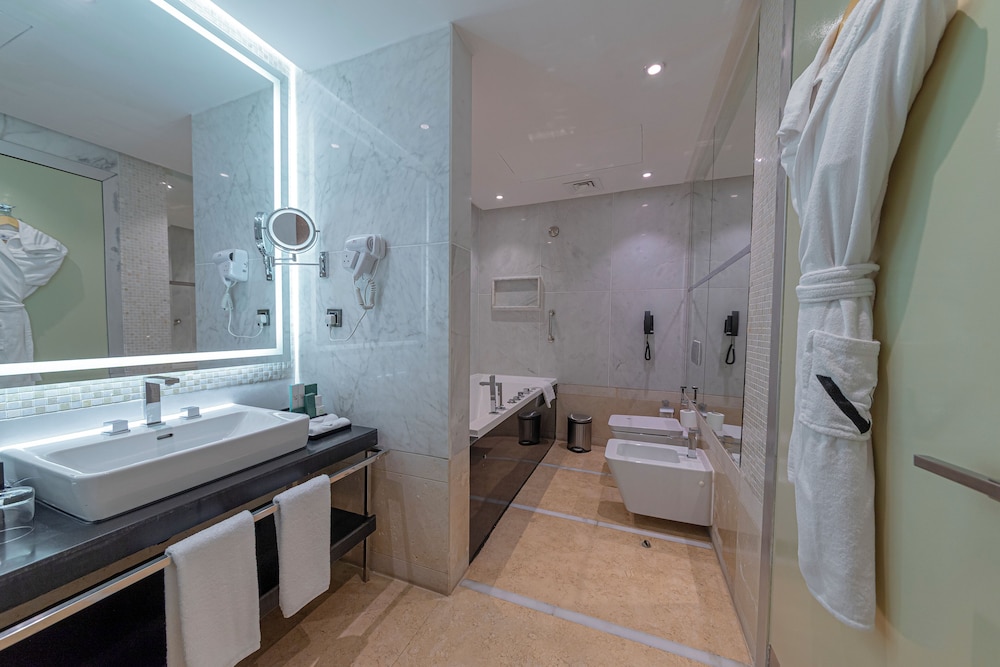 The Venue Jeddah Corniche in Dschidda (Ash Shati) ist nur 15 Minuten Fußweg entfernt von: Rotes Meer und Jeddah Corniche. Dieses Hotel im luxuriösen Stil ist 4,5 km von Red Sea Mall und 1,1 km von Hera Street entfernt. Fühl dich in einem der 191 klimatisierten Zimmer mit LED-Fernseher wie zu Hause. Ein WLAN-Internetzugang (kostenlos) steht zur Verfügung. Es sind eigene Badezimmer vorhanden, in denen du Komfortbadewannen und Regenduschen findest. Zur Austattung gehören Telefone ebenso wie Safes und Schreibtische. Entfernungen werden bis auf 0,1 Kilometer gerundet.