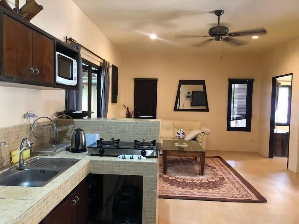 Baan Tropicana in Ko Samui liegt am Ozean, 15 Minuten Fahrt von Fischerdorf und Nathon Pier entfernt. Dieses Hotel ist 14,1 km von Strand von Chaweng und 20,1 km von Strand von Lamai entfernt. Fühl dich in einem der 5 Zimmer, die individuell eingerichtet sind und Kochnischen bieten, die über Kühlschränke und Herdplatte verfügen, wie zu Hause. Die Zimmer haben eigene Balkone oder Patios. Kabelempfang und DVD-Player stehen ebenso zur Verfügung wie ein WLAN-Internetzugang (kostenlos). Zur Austattung gehören Safes und Mikrowellen; die Zimmer werden täglich sauber gemacht. Entfernungen werden bis auf 0,1 Kilometer gerundet.