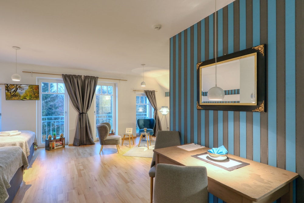 - Haustiere sind nur in ausgewählten Zimmern erlaubt (zusätzlich anfallende Kosten sind im Gebührenabschnitt aufgeführt). Bitte wende dich für die Zuweisung eines dieser Zimmer direkt an die Unterkunft. Die entsprechenden Kontaktinformationen findest du auf der Buchungsbestätigung.