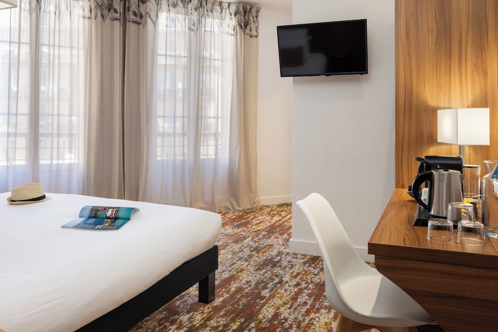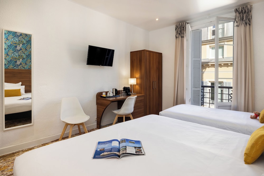 Hôtel KHLA Nice besticht durch eine zentrale Lage in Nizza, nur 5 Minuten Fahrt entfernt von: Promenade des Anglais und Place Masséna. Dieses Hotel ist 3,1 km von Jachthafen von Nizza und 21,6 km von Circuit de Monaco entfernt. Fühl dich in einem der 68 Zimmer, die Kühlschrank und einen Flachbildfernseher bieten, wie zu Hause. Ein WLAN-Internetzugang (kostenlos) ist ebenso verfügbar wie Satellitenempfang. Die Badezimmer bieten Duschen und Haartrockner. Zur Austattung gehören Safes und Schreibtische; die Zimmer werden täglich sauber gemacht. Entfernungen werden bis auf 0,1 Kilometer gerundet.