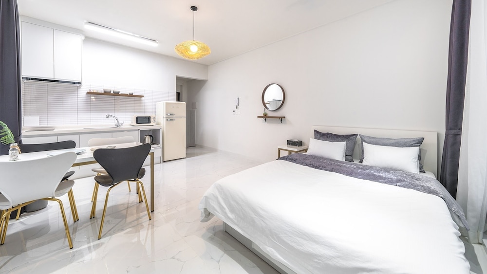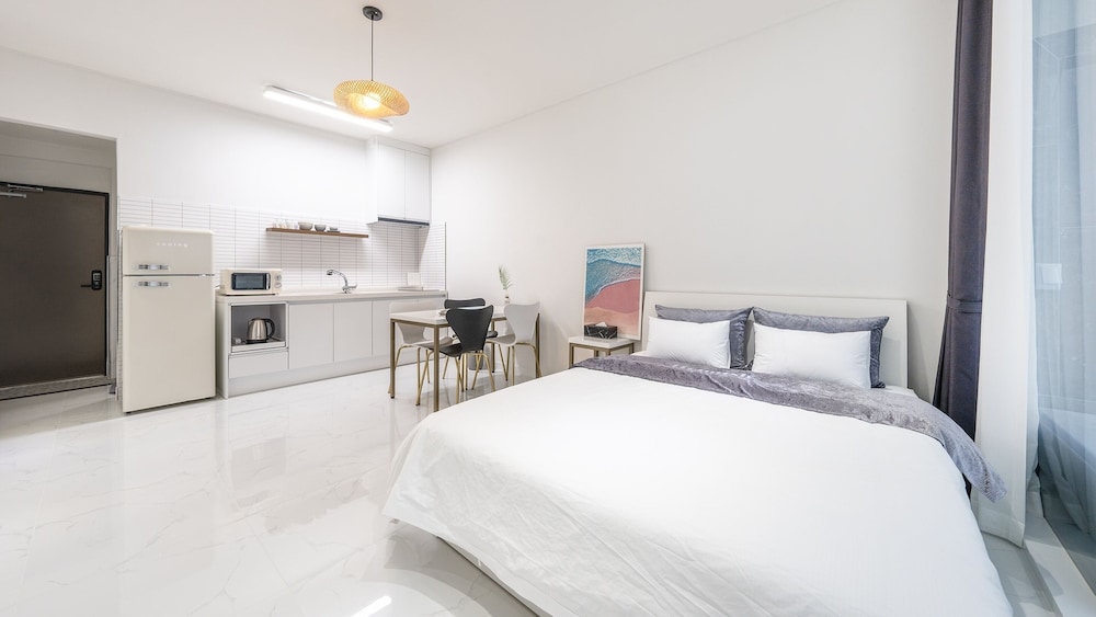 Yeosu Hemiswi SPA Pension in Yòsu liegt in Strandnähe und 7 Minuten Fahrt von Schifffahrts- und Fischereimuseum entfernt. Diese Pension ist 7,9 km von Yeosu Art Land Skulpturenpark und 11 km von Bangjukpo Beach entfernt. Fühl dich in einem der 7 Zimmer, die Kühlschrank und einen LCD-Fernseher bieten, wie zu Hause. Ein WLAN-Internetzugang (kostenlos) steht zur Verfügung. Badezimmer mit Badewannen oder Duschen sind vorhanden. Entfernungen werden bis auf 0,1 Kilometer gerundet.