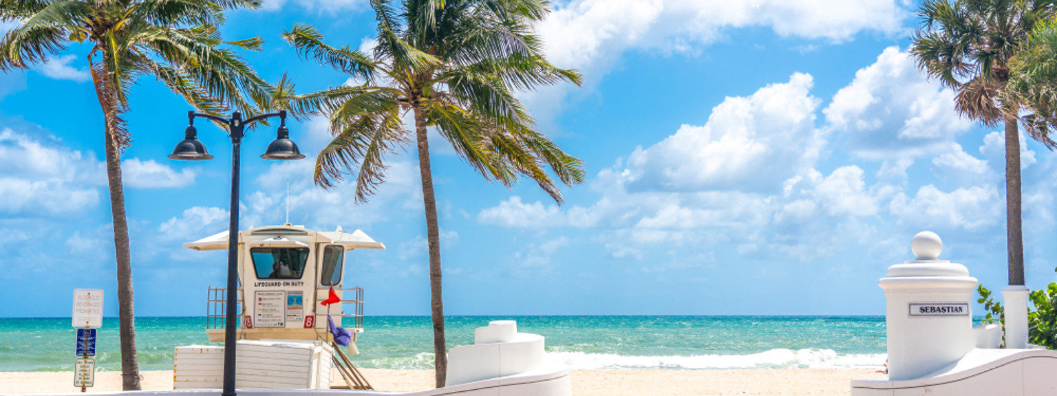 Fort Lauderdales prächtige, weiße Sandstrände erstrecken sich sowohl nördlich als auch südlich der Stadt. Auf halber Strecke nach Miami liegt das beliebte Hollywood Beach mit ebenso schönem Strand. Die Strände sind leicht zugänglich, da oft eine Straße entlang der Küstenlinie verläuft. Für Aktivurlauber gibt es hier ein großes Angebot an verschiedenen Sportarten an Land und im Wasser. Die Stadt ist auch bekannt für ihren großen Hafen, Port Everglades, wo die großen, prächtigen Kreuzfahrtschiffe anlegen.