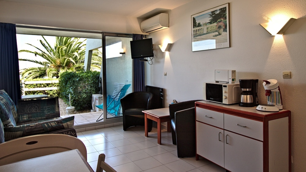 Les Rivages d'Ulysse in Le Grau-du-Roi liegt am Meer, nur eine 10-minütige Fahrt von Seaquarium und Babyland entfernt. Dieses Aparthotel in Strandnähe ist 0,1 km von Port-Camargue und 7,9 km von Plage Espiguette entfernt. Fühl dich in einem der 40 klimatisierten Zimmer, die Kochnischen bieten, die über Kühlschränke und Herdplatte verfügen, wie zu Hause. Die Zimmer haben eigene Balkone oder Patios. Die 24 Zoll großen Flachbildfernseher bieten Digitalempfang. Zur Austattung gehören Mikrowellen und Wasserkocher mit Kaffee-/Teezubehör; die Zimmer werden auf Anfrage sauber gemacht. Entfernungen werden bis auf 0,1 Kilometer gerundet.