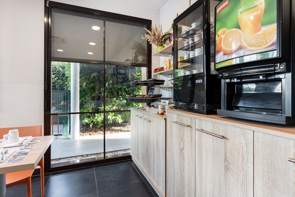 Hotel All Suites Le Teich in Le Teich liegt nur eine 10-minütige Fahrt von Parc Ornithologique du Teich und Aqualand Bassin d'Arcachon entfernt. Dieses Hotel mit Golfplatz ist 14,9 km von Golfclub Arcachon und 16,2 km von Dune du Pilat entfernt. Fühl dich in einem der 49 klimatisierten Zimmer mit Flachbildfernseher wie zu Hause. Ein WLAN-Internetzugang (kostenlos) ist ebenso verfügbar wie Kabelempfang. Es sind eigene Badezimmer mit Duschen vorhanden, die über kostenlose Toilettenartikel und Haartrockner verfügen. Zur Austattung gehören Schreibtische und Verdunkelungsvorhänge; die Zimmer werden täglich sauber gemacht. Entfernungen werden bis auf 0,1 Kilometer gerundet.