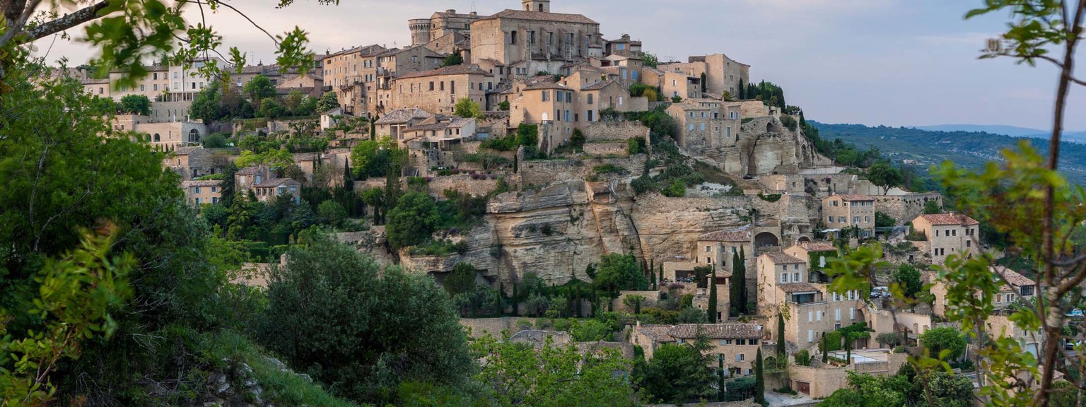 Kleine charmante Dörfer mit grauen Hausfassaden und schmalen, sich windenden Gassen scheinen auf Hügeln und in Tälern zu schlummern. Außer an Markttagen, natürlich. Dann pulsiert das Leben und Treiben. Es werden alle lokalen Produkte verkauft – Stoffe und Töpferwaren, Früchte, Gewürze, Olivenöl, Wein, Honig und Ziegenkäse. Die Provence ist die Landschaft für wahre Genießer.